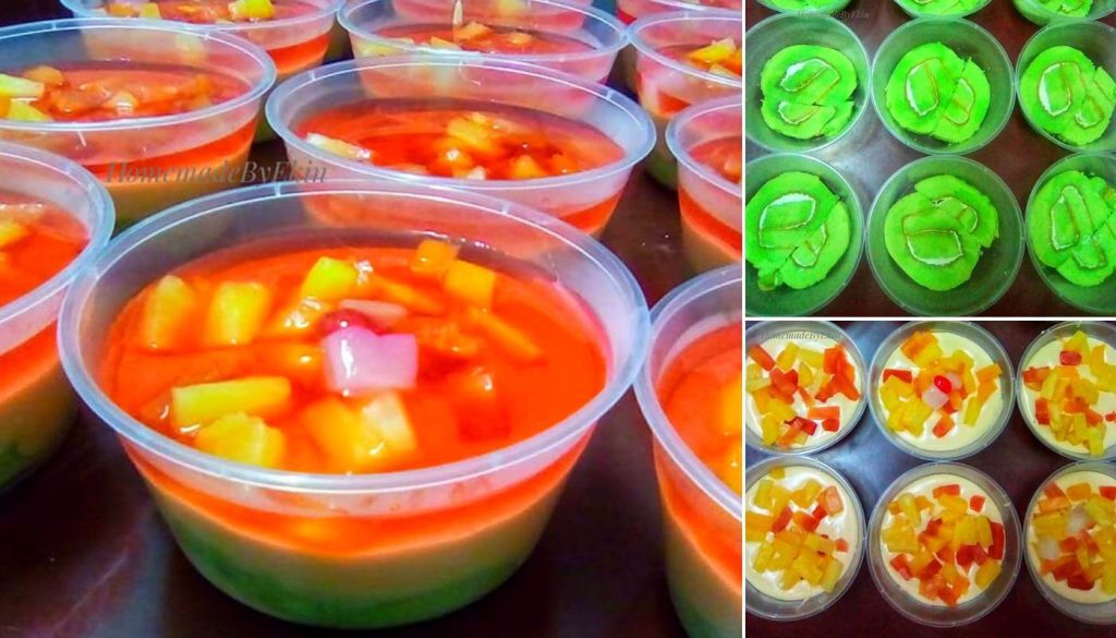 • 500 ml air (untuk bancuhan jeli – boleh campur air buah koktel untuk lebih rasa)