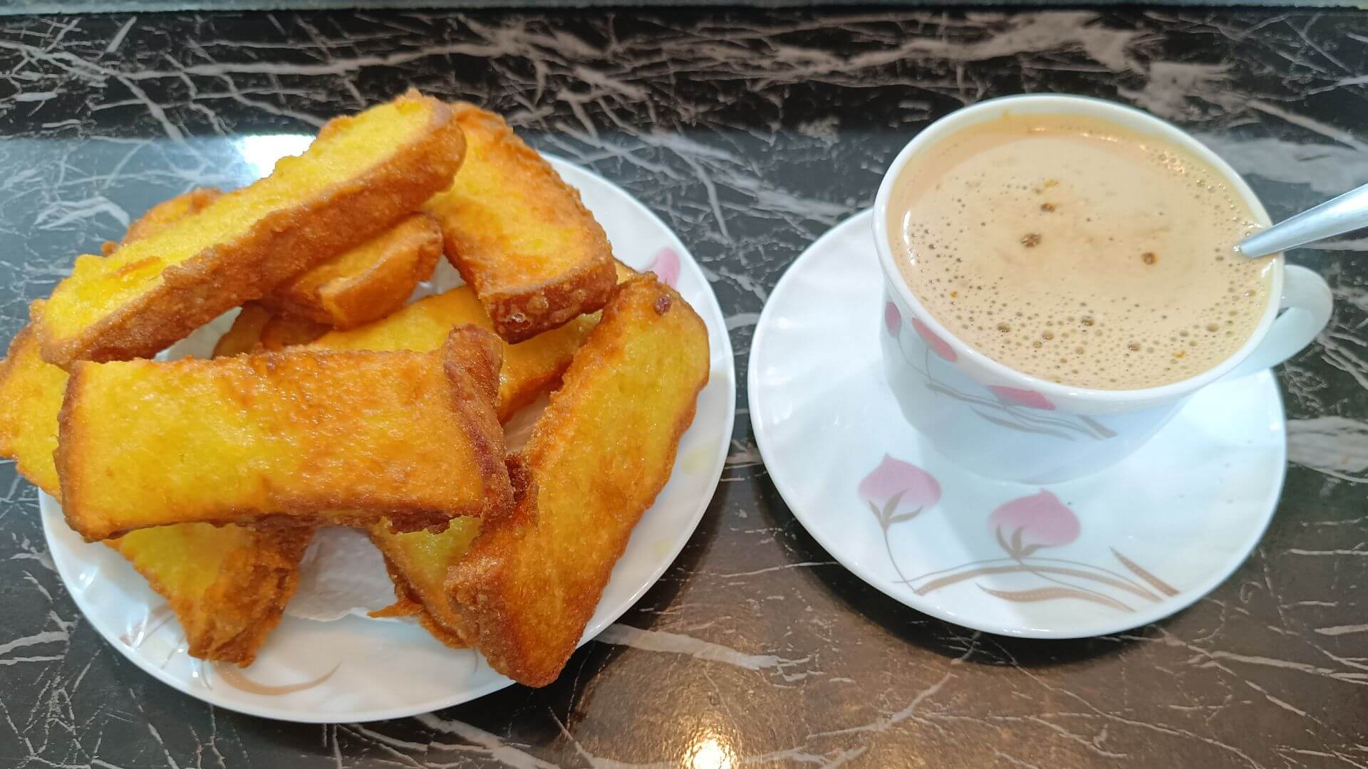 - Masukkan roti yang telah dicelup ke dalam minyak panas. Goreng sehingga permukaan roti berwarna kuning keemasan dan nampak rangup.