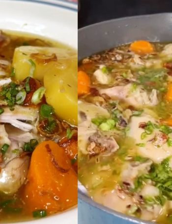 - Rebus ayam bersama bawang & lobak merah untuk buat sup.